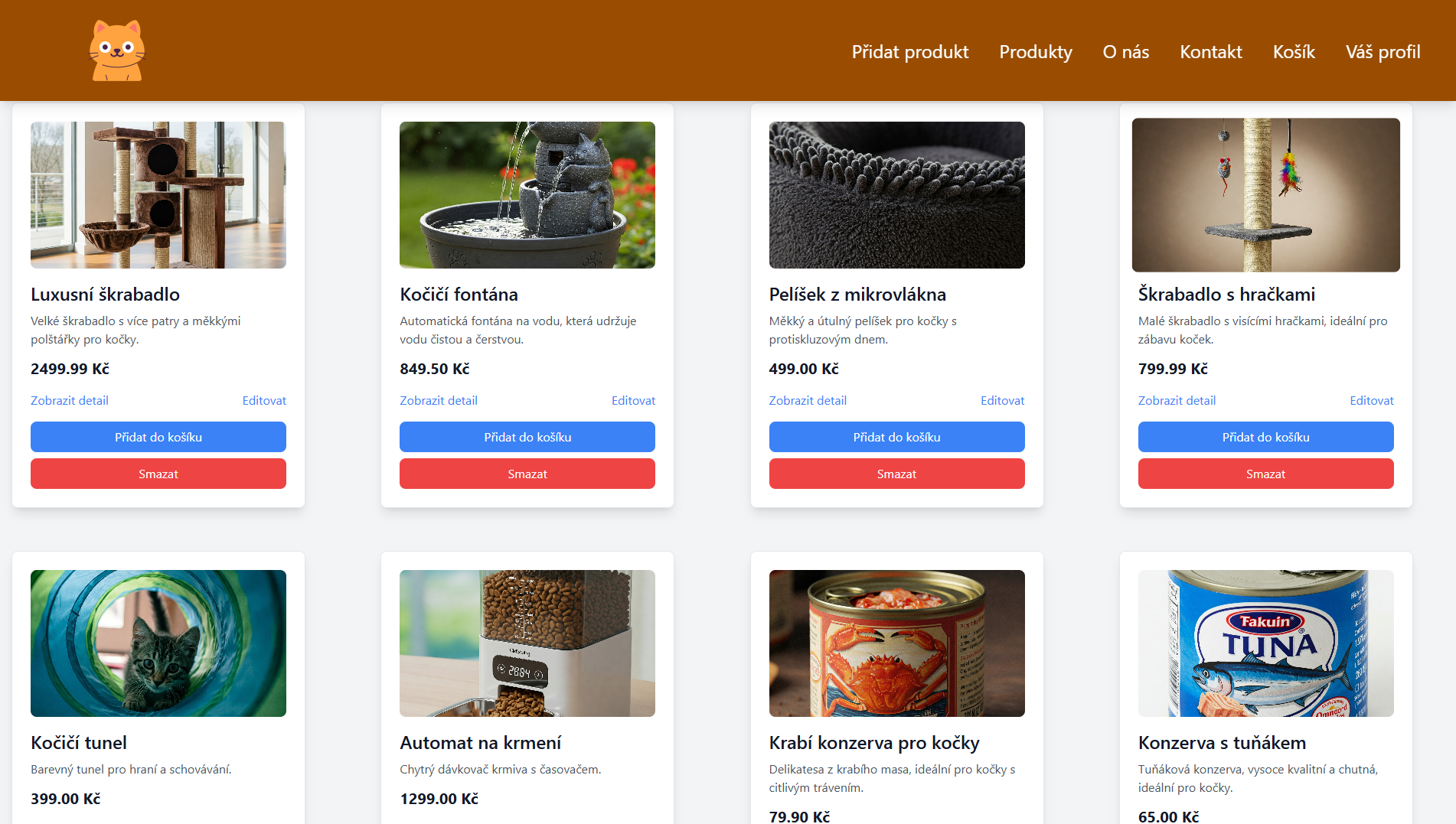 Návrh a vývoj plně funkčního e-shopu zaměřeného na produkty pro kočky. Klient si přál moderní, intuitivní a vizuálně atraktivní platformu pro prodej krmiv, hraček a doplňků.
